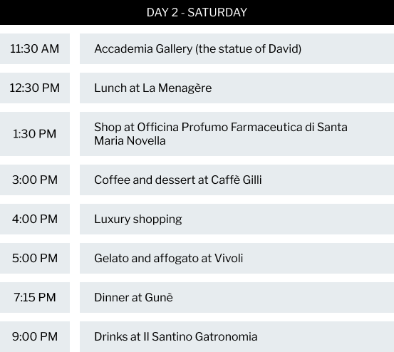 After arriving in Florence later than expected, we just managed to squeeze in dinner at Regina Bistecca where I had the best steak I’ve ever eaten, and drinks at Locale Firenze.